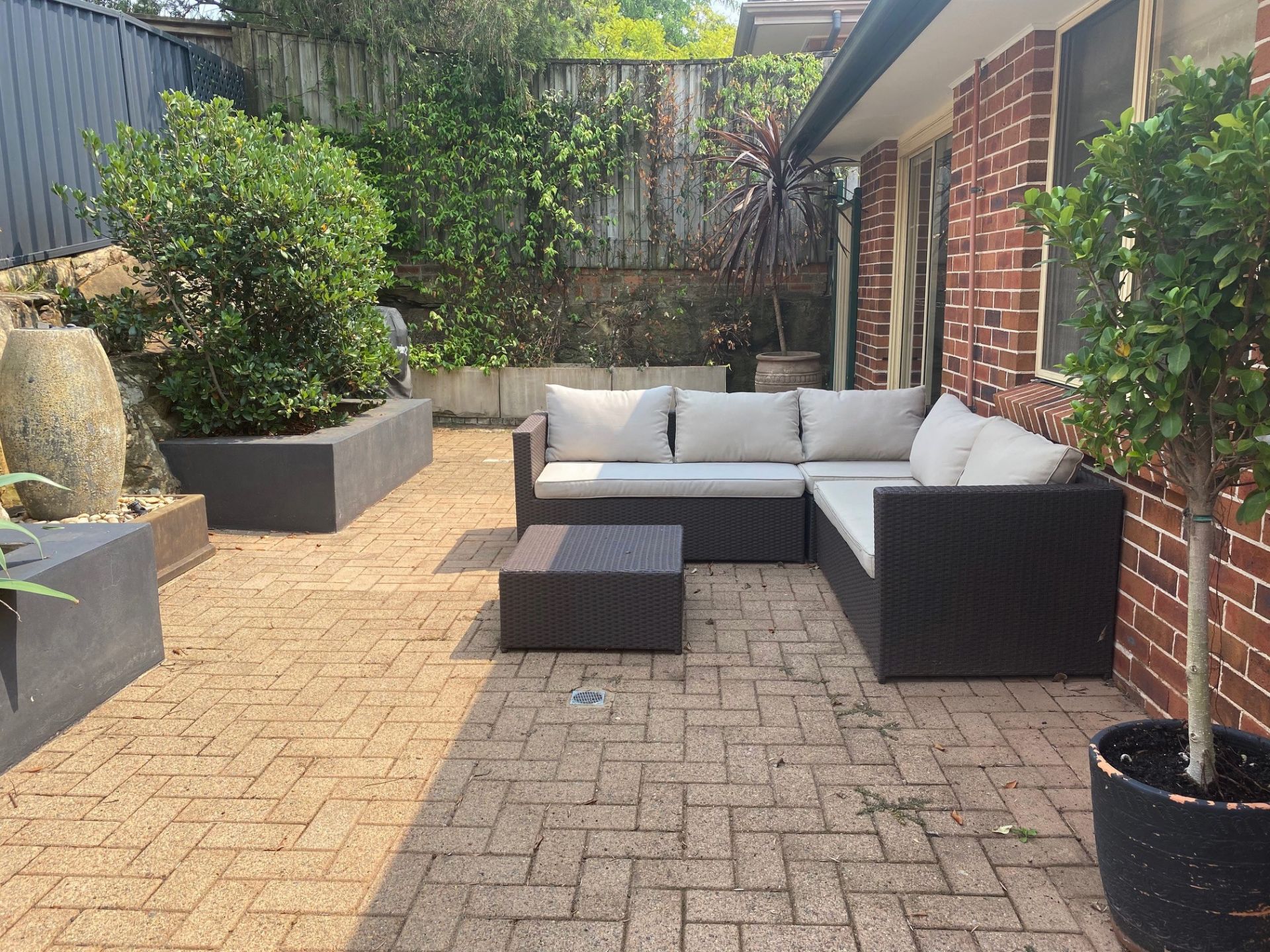 Low maintenance gardens, lawn maintenance included.