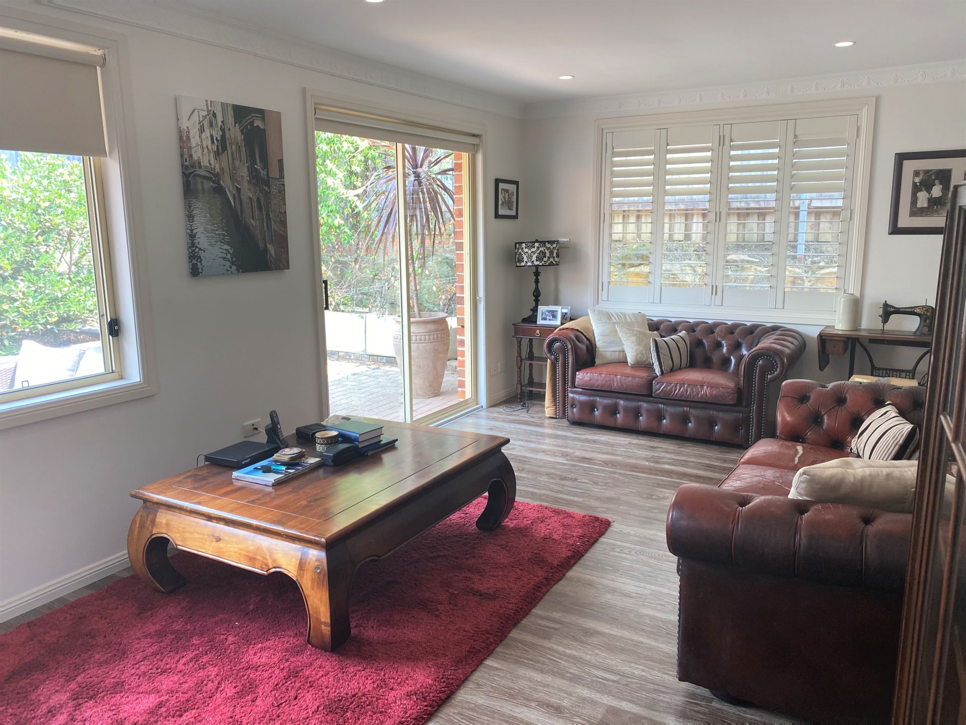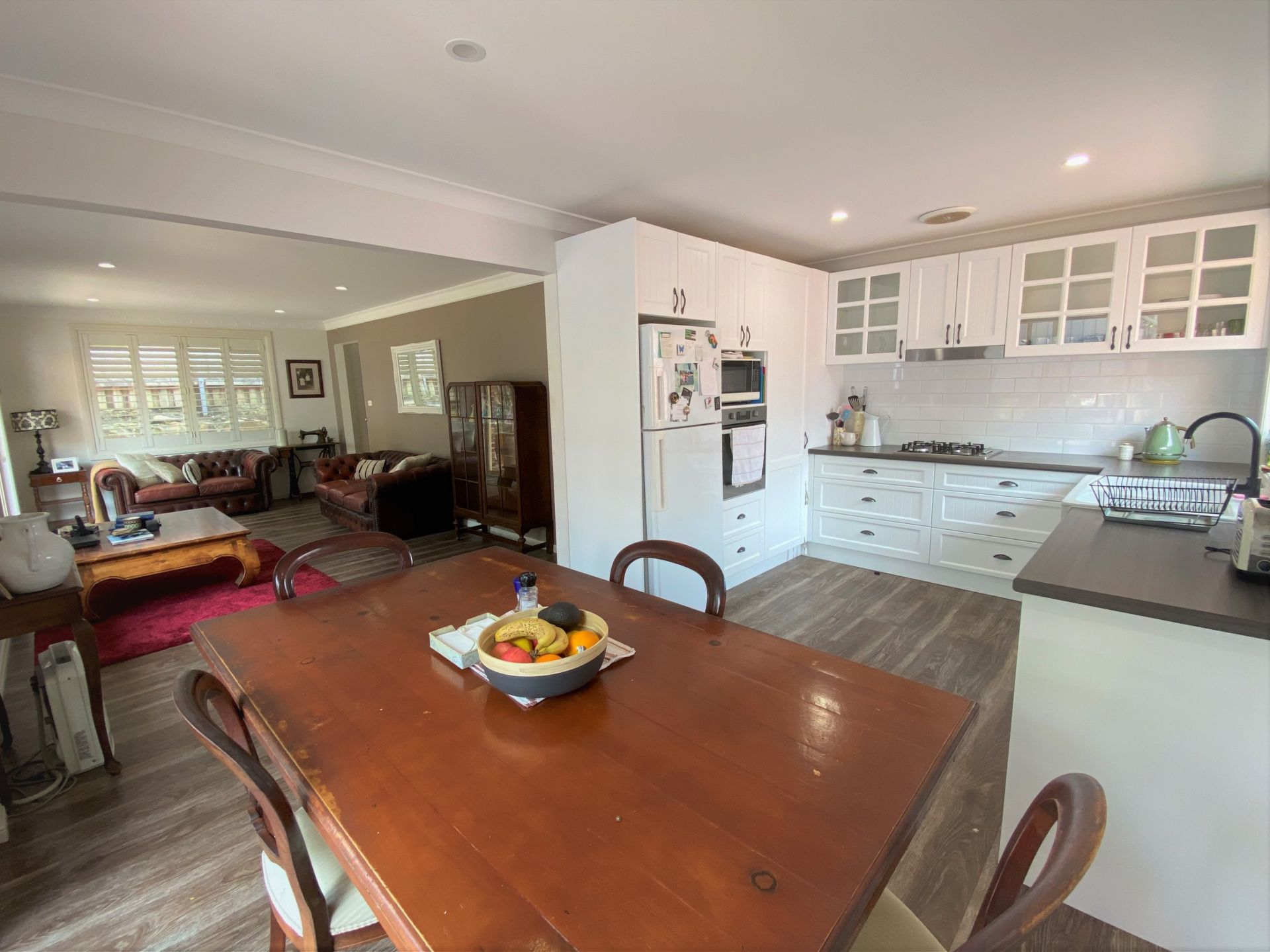 Open plan family dining room and lounge living area opens out to a paved bbq courtyard area.