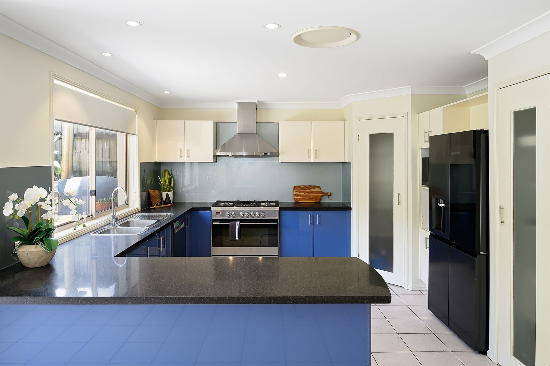 At the heart of the home, the gourmet family kitchen showcases quality appliances including a chef-style oven, large burner gas cooktop, microwave, LG water and ice fridge, ample pantry space, and generous benchtops. This impressive kitchen flows seamlessly to the meals area and out to the alfresco zone, perfect for keeping an eye on children or pets while entertaining year-round.