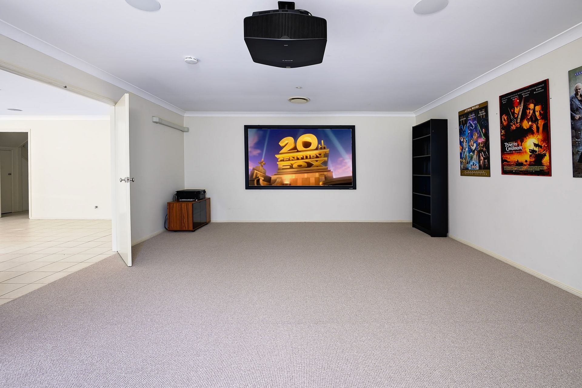 The cinema room is fully equipped with premium Len Wallace projection and sound equipment, including speakers and subwoofers, professionally serviced every six months with an introductory handover — ideal for unforgettable movie nights at home.