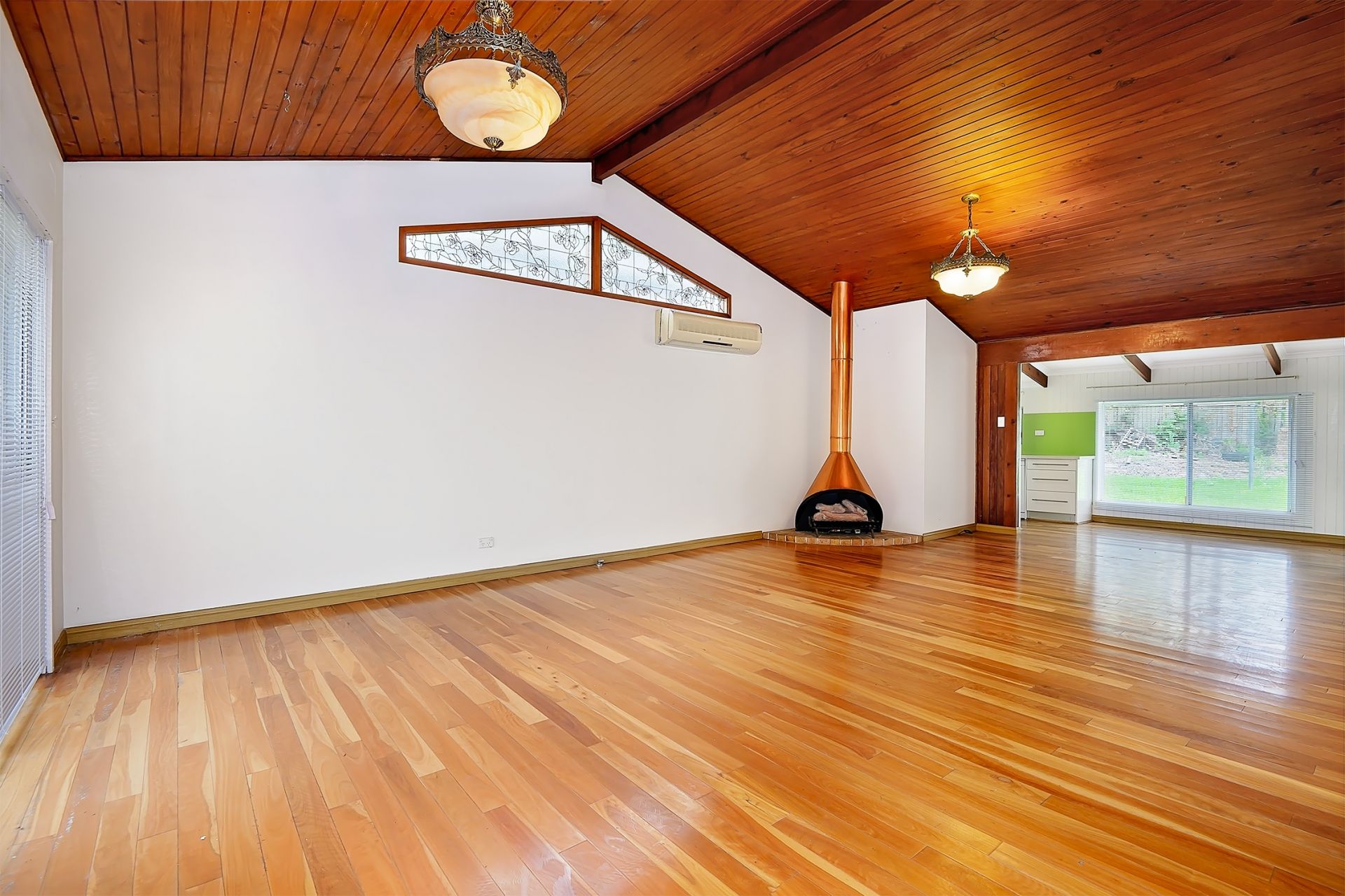 The kitchen is bright and welcoming, overlooking a level grass backyard. It has recently been updated with a brand-new oven and gas cooktop, and also includes a dishwasher. A small meals area adjoins the kitchen and flows through to a large combined lounge and dining space. Vaulted ceilings in the lounge and dining area give it an open, airy feel and enhance the sense of generous proportions. Timber floors run throughout the home.