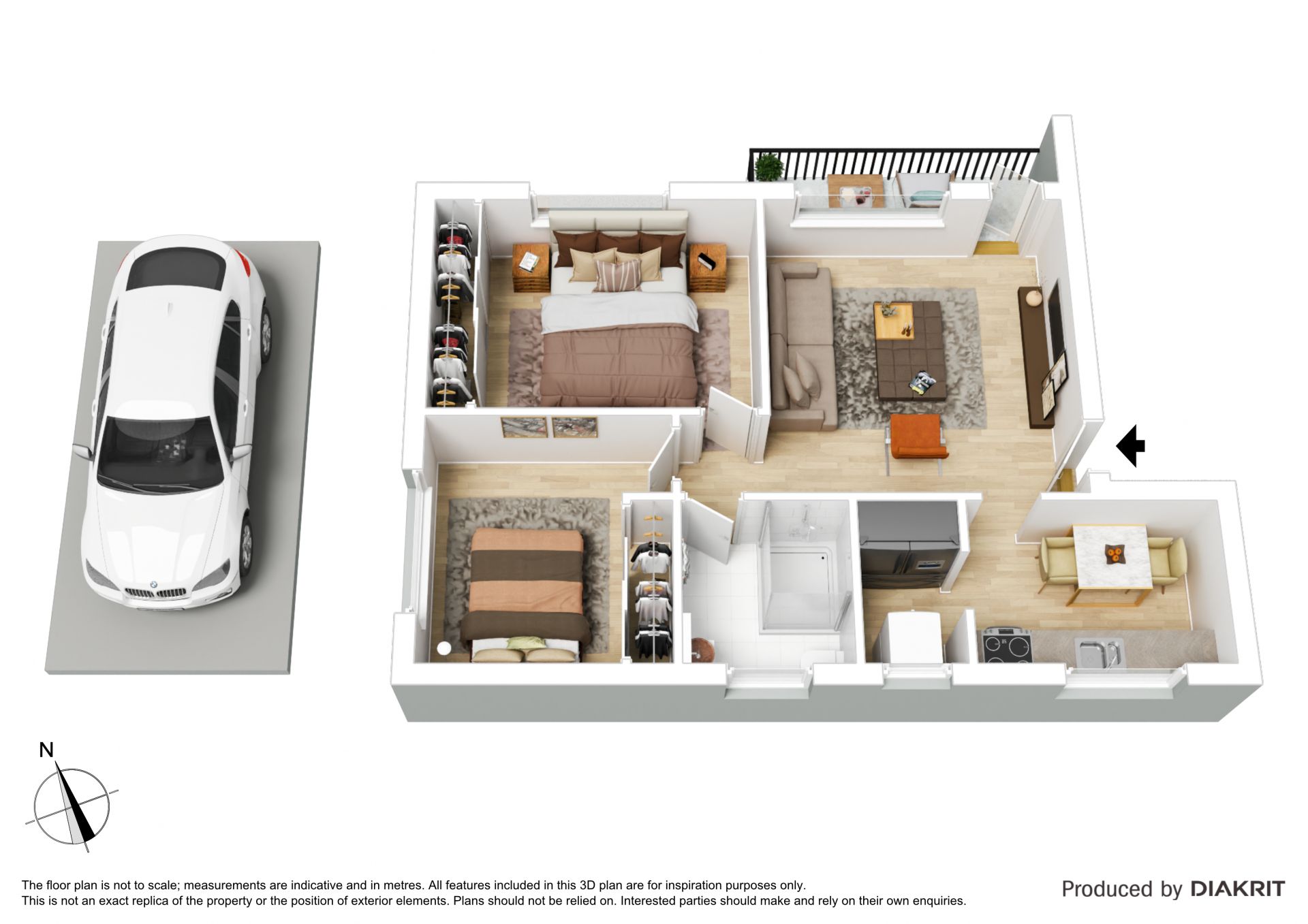 Open plan living with North facing balcony