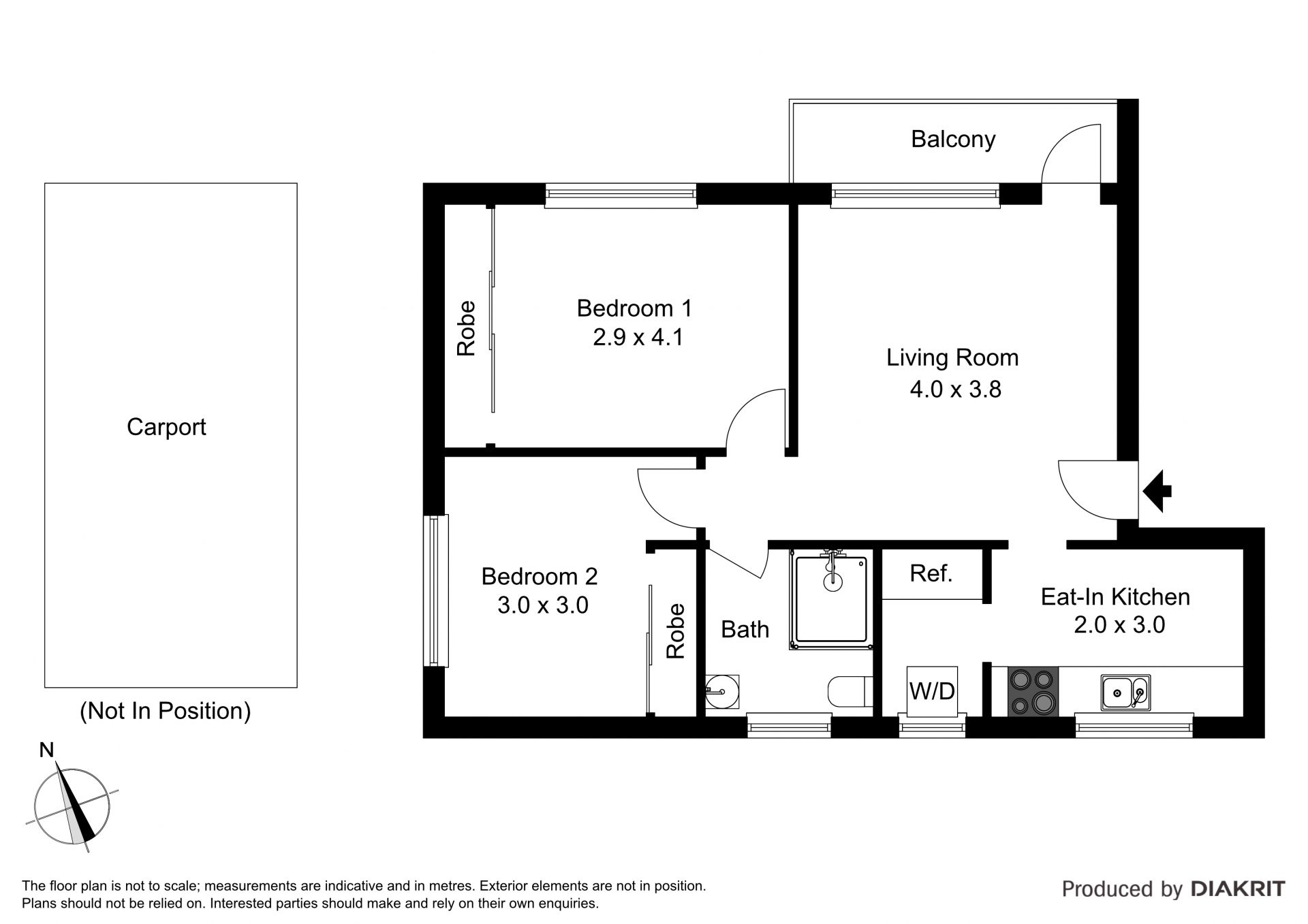Two bedrooms with built-in robes, full bathroom with bath and shower plus carport space