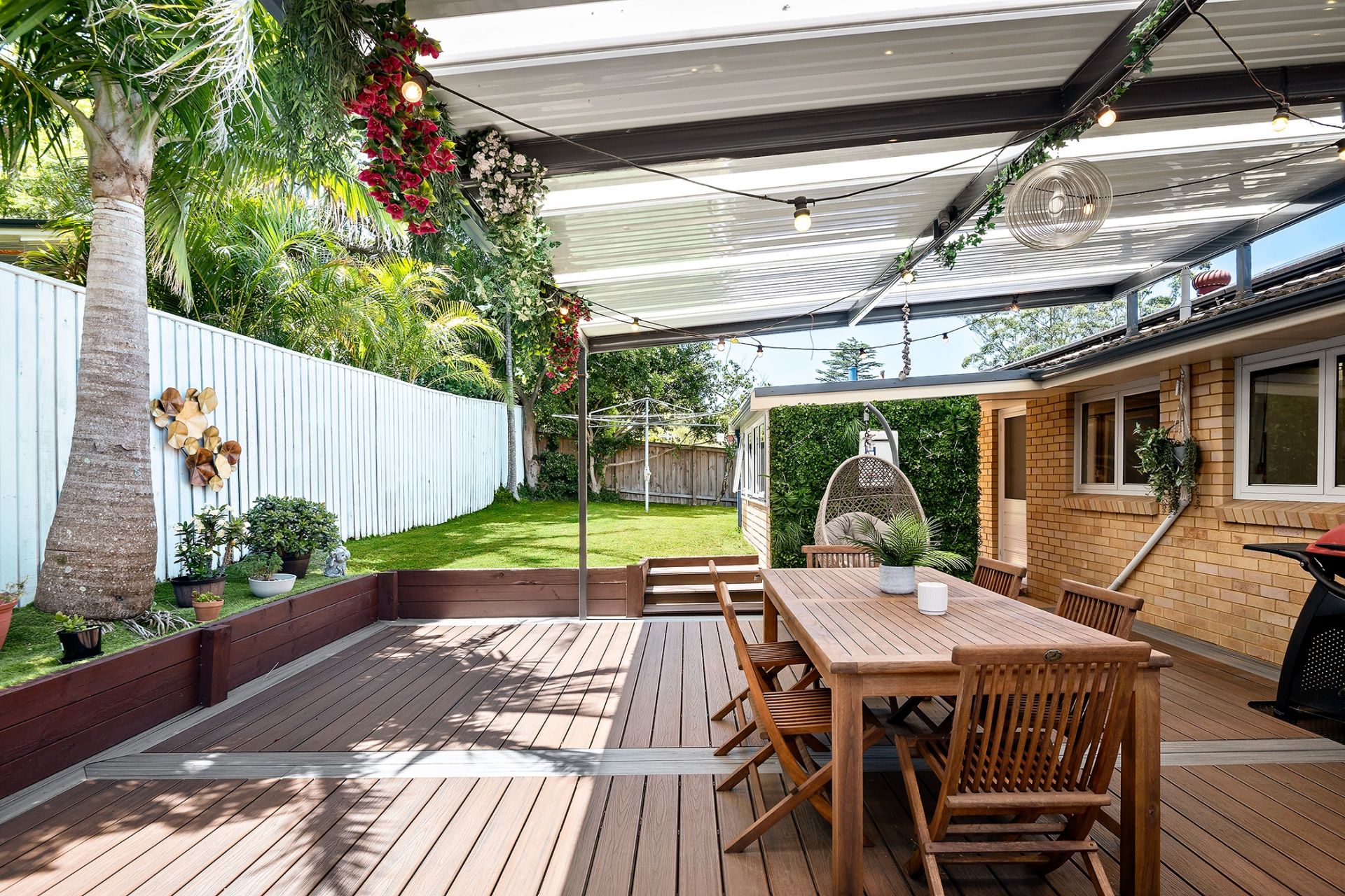 - Private rear yard with covered entertaining deck & level lawn area